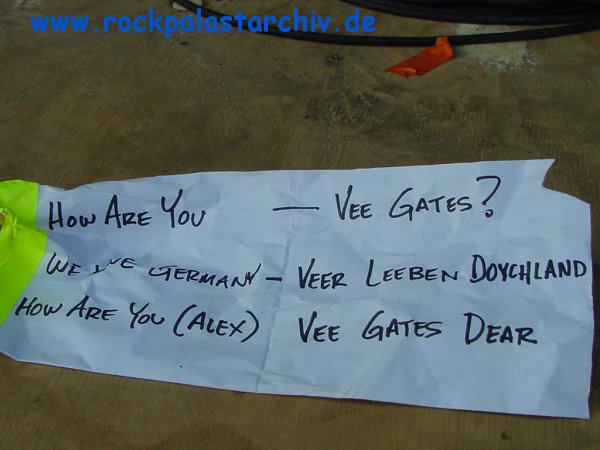 Loreley 1995 Loreley 1996 Loreley 1997 Loreley 1998 Loreley 1999 9th Bizarre 1995 Berlin 1996 Rocknacht 1996 Club Fete 1997 Xmas Special 1998 Lou Reed 2000 14th Bizarre 2000 Xmas Special 2000 Ostern 2001 Rock am Ring 2001 15th Bizarre 2001 Ostern 2002 Rock am Ring 2002 16th Bizarre 2002 Xmas Special 2002 Rock am Ring 2003 Rock am Ring 2004 Jazztage 2004 Rock am Ring 2005 Burg Herzberg 2005 Gronau 2006 Tickets, Pässe etc. Johnny Winter 2007Rock am Ring 2007Rocknacht 2008