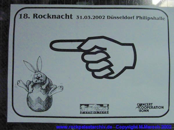 Loreley 1995 Loreley 1996 Loreley 1997 Loreley 1998 Loreley 1999 9th Bizarre 1995 Berlin 1996 Rocknacht 1996 Club Fete 1997 Xmas Special 1998 Lou Reed 2000 14th Bizarre 2000 Xmas Special 2000 Ostern 2001 Rock am Ring 2001 15th Bizarre 2001 Ostern 2002 Rock am Ring 2002 16th Bizarre 2002 Xmas Special 2002 Rock am Ring 2003 Rock am Ring 2004 Jazztage 2004 Rock am Ring 2005 Burg Herzberg 2005 Gronau 2006 Tickets, Pässe etc. Johnny Winter 2007 Rock am Ring 2007Rocknacht 2008
